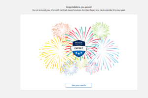 En el día de hoy me he vuelto a recertificar de Azure Solutions Architect Expert, no puedo decir que fuera fácil habían preguntas que eran sencillas, pero otras me ha hecho pensar y sudar la gota gorda.
